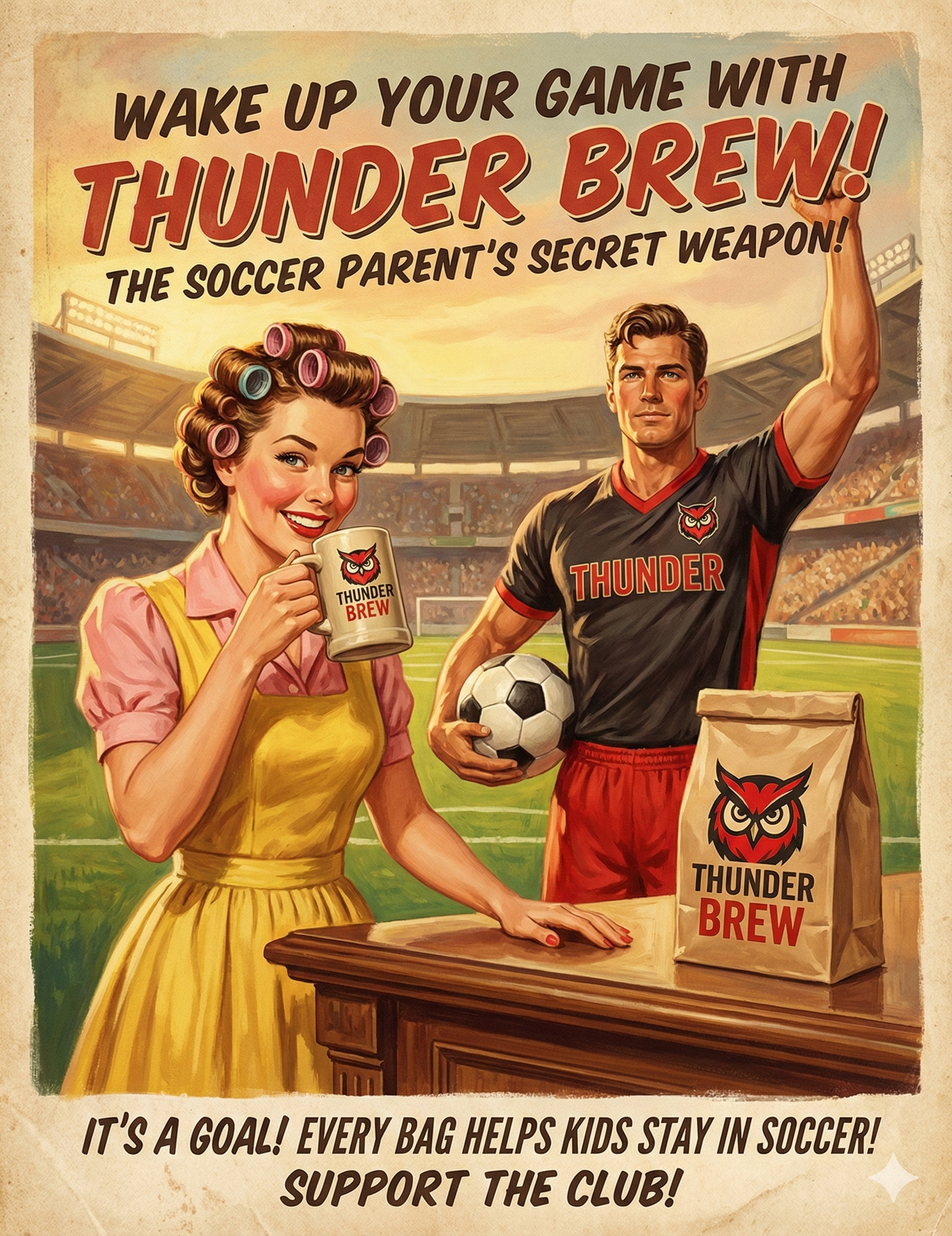 ThunderFC is proud to announce we have partnered with Cuppers Coffee & Tea and have our own blend of Coffee. It's called Thunder Brew! Please support us by purchasing a bag.